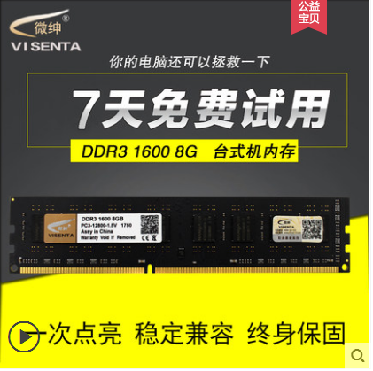 • 商品名称:Visenta/微绅全新DDR3 1600 8G台式机内存条兼容4g 2g1333双通16G